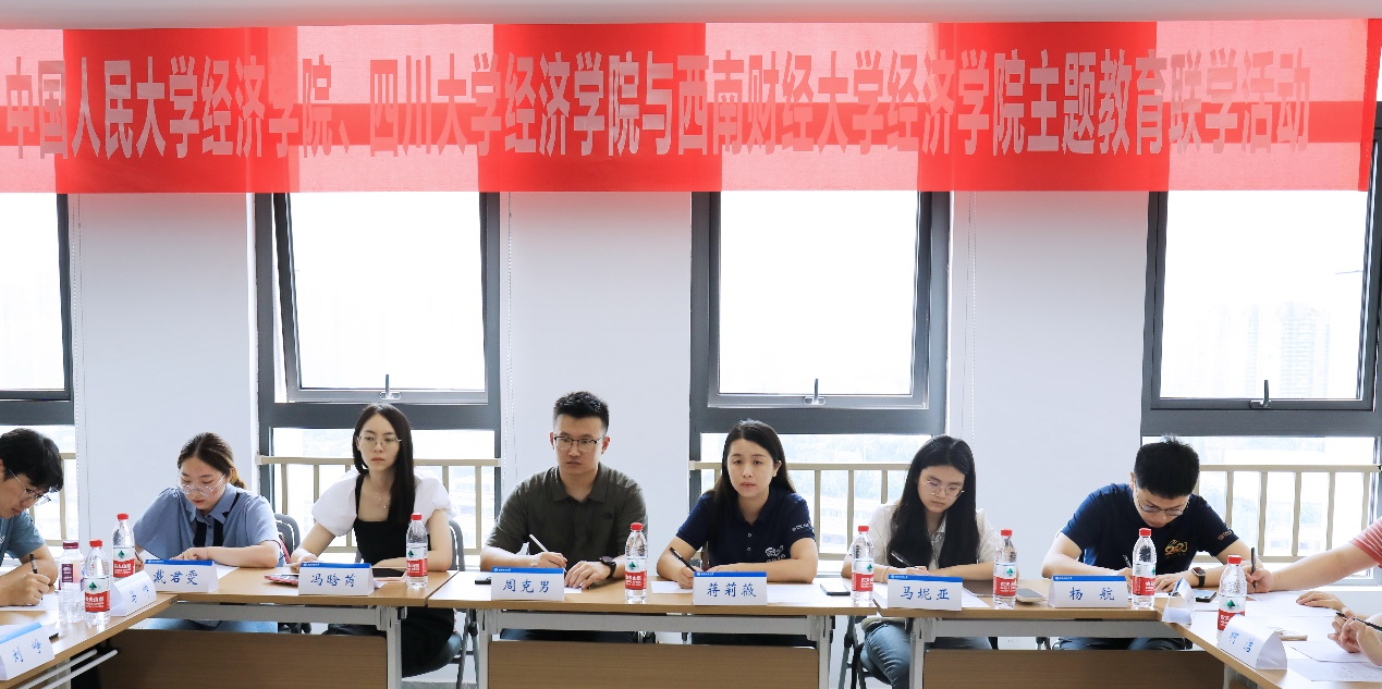 随后,三校师生在诚正楼1542会议室就主题教育和党建经验等话题进行了座谈交流。在座谈会上,韩文龙汇报了米乐官网开展主题教育的主要做法和取得的阶段性成果;梁剑介绍了四川大学MILE米乐集团传承红色文化及革命传统的主要做法和学生支部建设的主要经验;蒋莉薇介绍了中国人民大学MILE米乐集团学生党支部开展主题教育和创建全国研究生样板支部的有益经验等。三校学生党支部书记和党员也围绕样板支部创建、党员管理和党支部建设等进行了深入交流。