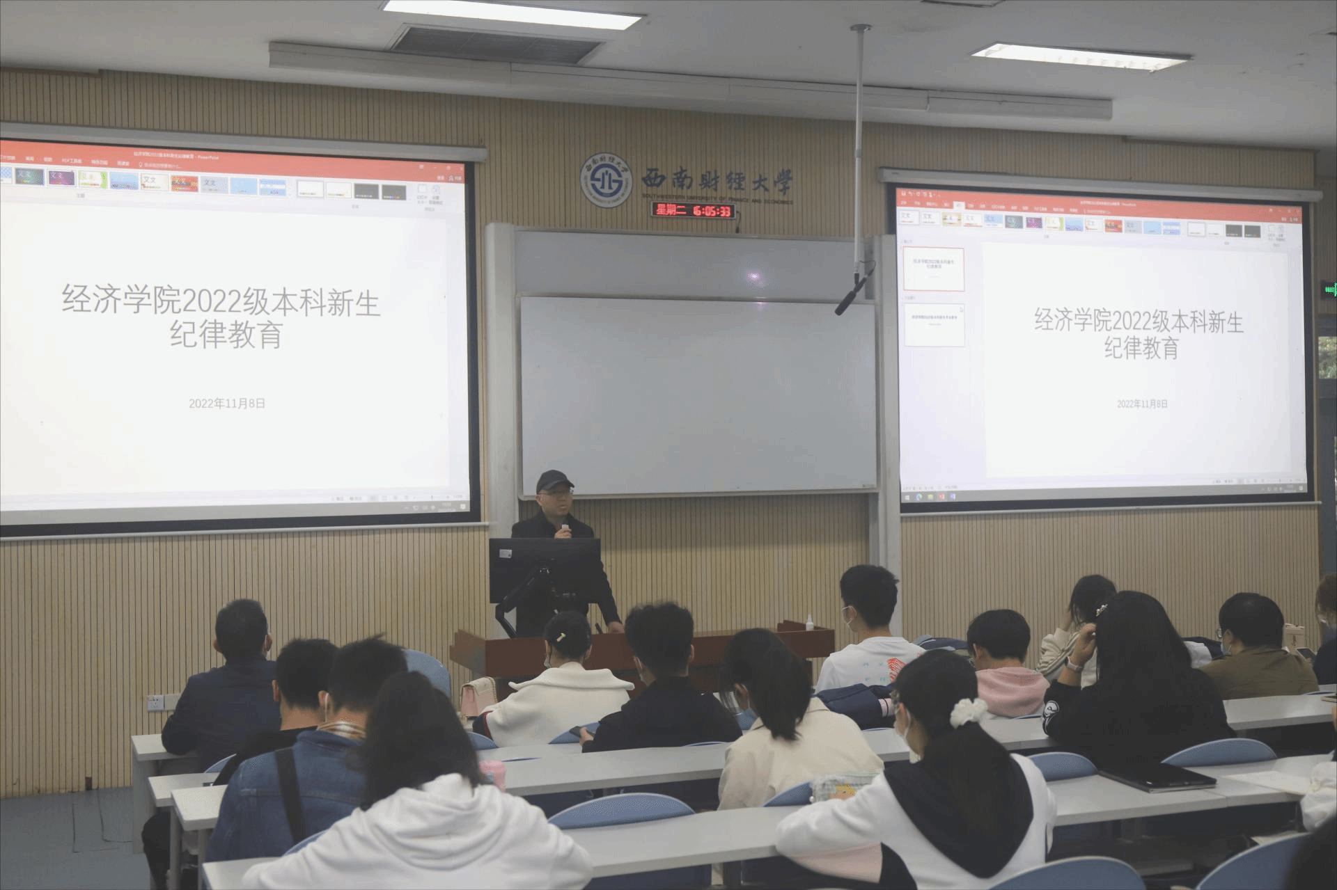 11月8日,MILE米乐集团2022级本科新生举行纪律教育及专业教育大会,副书记胡舒、教学副院长韩文龙主持会议并做了专题发言,本科教学秘书方小书等参会。