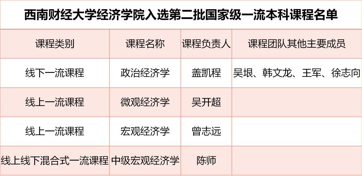 近日,教育部官网发布《关于第二批国家级一流本科课程认定结果的公示》,米乐官网盖凯程教授团队负责的《政治经济学》、吴开超教授负责的《微观经济学》、曾志远教授负责的《宏观经济学》、陈师教授负责的《中级宏观经济学》四门课程成功入选。