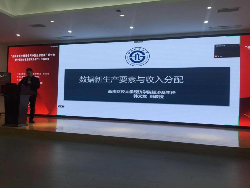 21日上午大会主旨演讲环节,王朝明教授、李萍教授分别做了《扩大中国农村中等收入群体:机制与实证探究》和《大变局谋新局:厚植中国长期经济发展潜力》的主题报告。下午的会议环节,袁正教授、韩文龙副教授分别作了《社会资本与幸福感》和《数据要素与收入分配的政治经济学分析》的发言报告。22日上午,程民选教授作了《深化农村土地制度改革与完善农村基本经营制度》的主题报告。