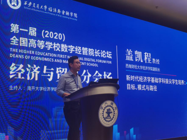 9月25日,首届全国高等学校数字经管院长论坛在西安召开。论坛由西安交通大学经济与金融学院与中国财经教育资源共享联盟、中国高校财经慕课(E-MOOC)联盟联合主办,北京百智享科技有限公司、高等教育出版社、等单位协办。学院副院长盖凯程应邀出席论坛并做了《新时代经济学基础学科拔尖学生培养:目标、路径和模式》的主题发言。