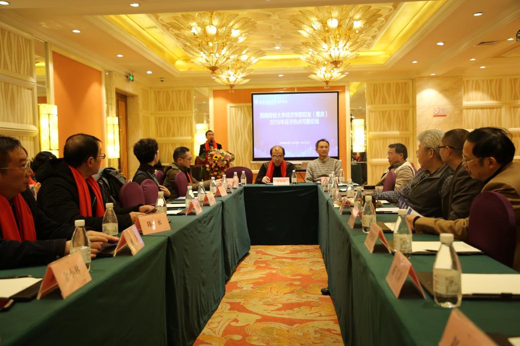 12月28日下午,米乐mile官方网站校友会暨经济热点问题论坛在重庆江北区哈曼酒店召开,学院执行院长易敏利教授、教师代表方行明教授、蔡晓陈教授、袁正教授、李标副教授及学院相关工作人员、学生代表一行赴重庆,参与MILE米乐集团重庆校友举行经济热点问题论坛。学院重庆校友会会长余小林、副会长张义、副秘书长王琼、校友代表吴家农、詹承志、姚姜军等55人共同参与论坛。