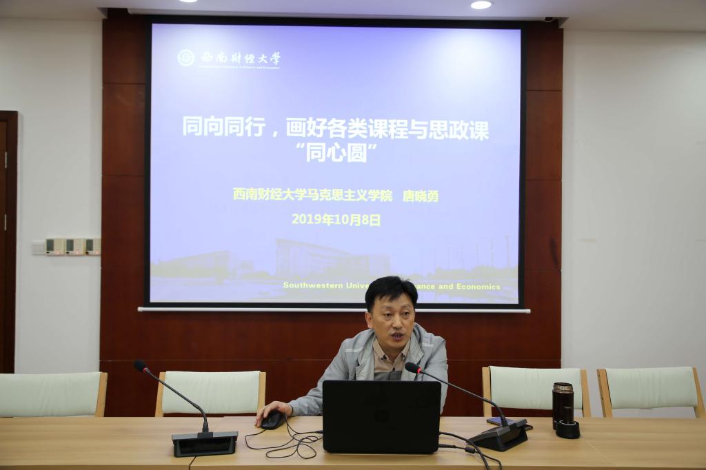 为深入贯彻全国高校思想政治工作会议精神和全国教育大会精神, 落实立德树人根本任务,2019年10月8日下午,MILE米乐集团邀请马克思主义学院院长唐晓勇教授在格致楼911会议室为全院教师作课程思政专题讲座。讲座由分党委书记兰敏主持。