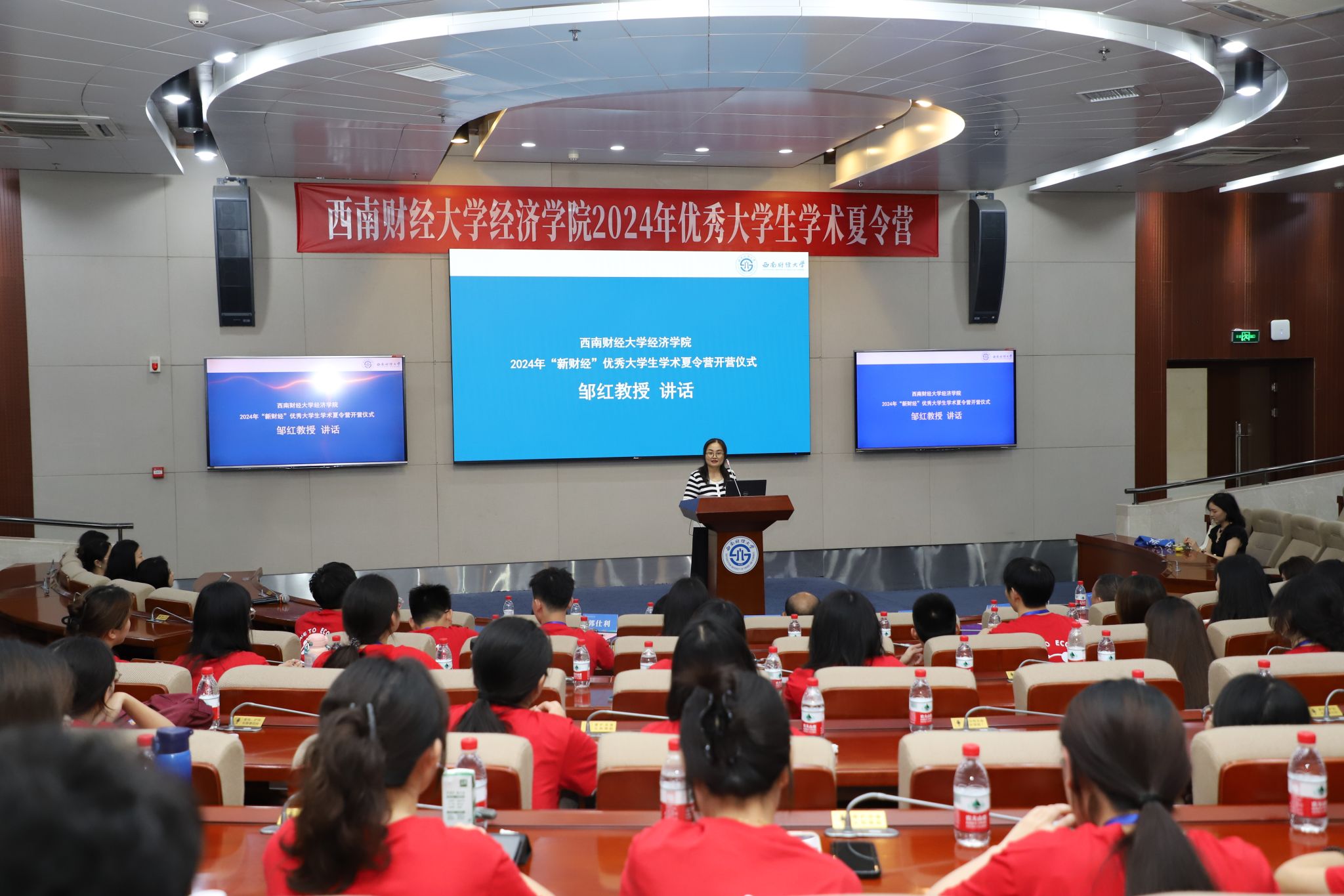 7月8日上午,米乐mile官方网站在弘远楼101报告厅举行了2024年“新财经”优秀大学生学术夏令营开营仪式。MILE米乐集团院长盖凯程教授、副院长邹红教授、各系所负责人、教师代表,以及来自全国各重点院校的78名优秀学生参加了此次开营仪式。