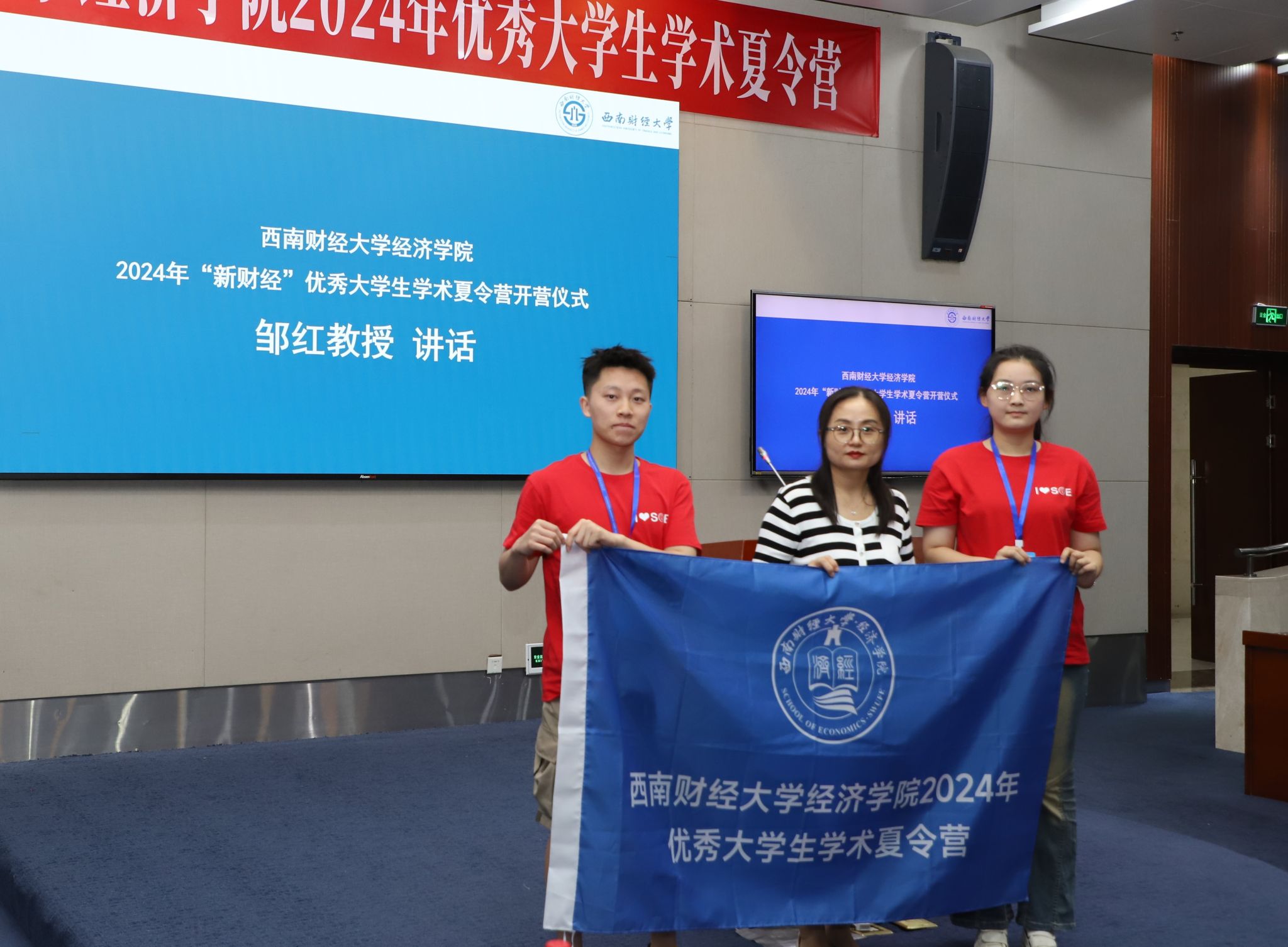 邹红副院长就MILE米乐集团研究生培养特色、出国交流、就业情况与面试细则,向各位营员们做了详细介绍,她指出MILE米乐集团是一所办学历史悠久、学术氛围浓厚、师生关系融洽、就业前景可观的学院,鼓励营员们在参营期间更多了解西财、了解MILE米乐集团,并预祝营员们展现实力、梦想成真。邹院长还为两位优秀营员代表授予MILE米乐集团学术夏令营营旗。