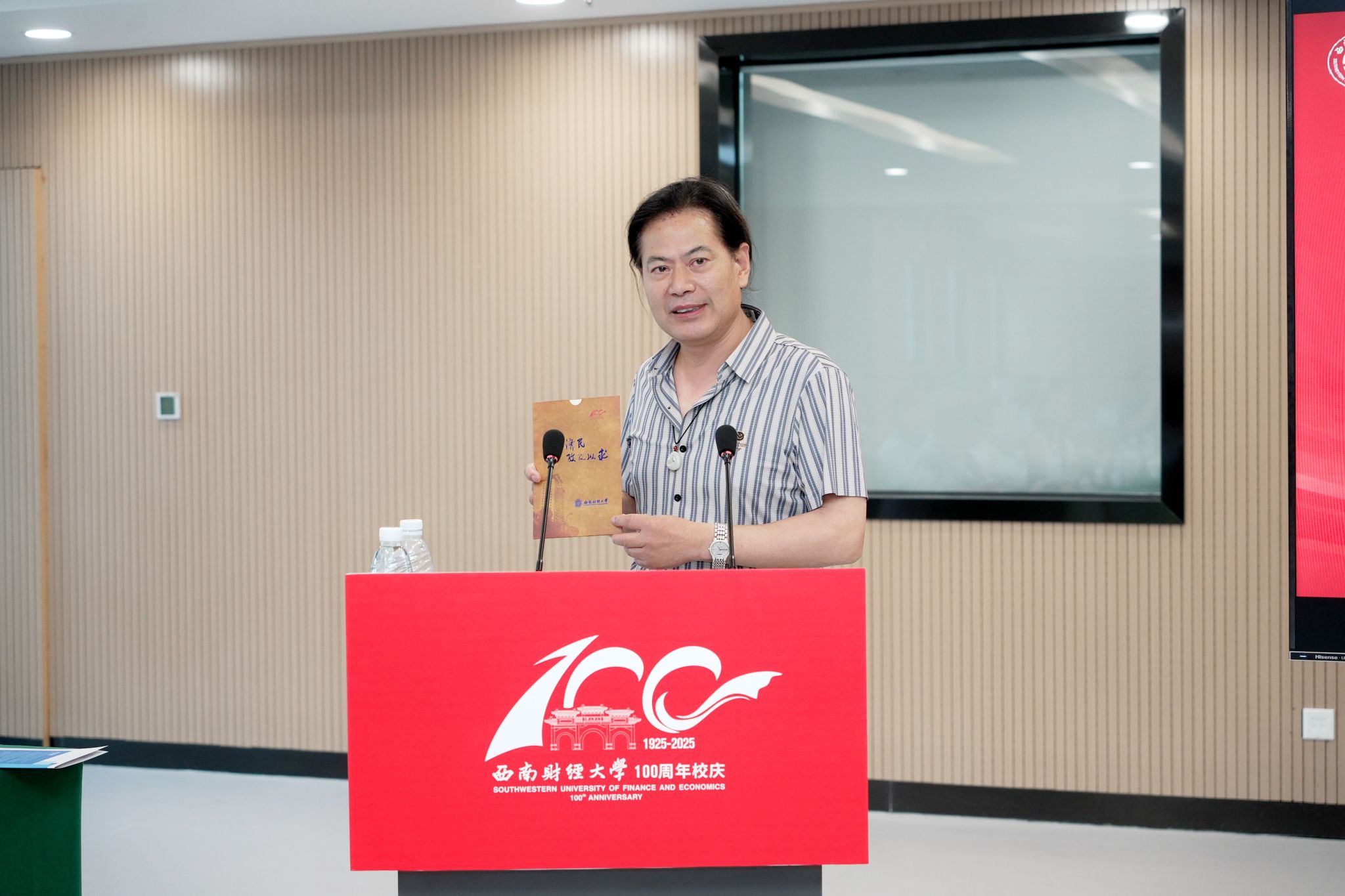 校友代表谢平教授发言,他声情并茂地讲述了自己的学生时代和毕业后的工作经历,表示在西财所学到的扎实专业知识,以及母校赋予的严谨治学态度与开拓创新精神,成为了他职业生涯的坚实基石。