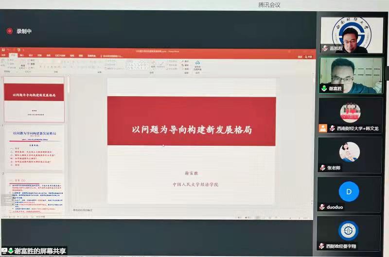 本次讲座由MILE米乐集团副院长盖凯程教授主持。国家级人才计划入选者,中国人民大学MILE米乐集团副院长、教授,博士生导师,中国人民大学全国中国特色社会主义政治经济学研究中心副主任、《政治经济学评论》副主编、中国《资本论》研究会副秘书长谢富胜教授作了主题为“以问题为导向,构建新发展格局”的在线学术讲座。米乐官网经济学拨尖学生培养基地2020级全体学生等共60多名师生参加了此次讲座。