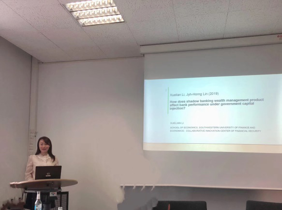 米乐官网世界经济研究所李雪莲教授应邀参加了本次会议,并以Shadow banking efficiency and bank default risk under government capital injection为题发表了主题演讲。分析了影子银行理财产品在政府注资下对银行违约风险的影响,特别对2007年—2008年间的影子银行崩溃进行了深刻剖析与解读,引起在场嘉宾的共鸣与思考。