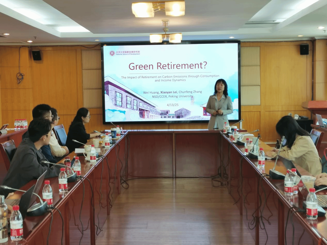 4月13日上午,百年校庆杰出学者讲座第34期——“Green Retirement:The Impact of Retirement on Carbon Emissions through Consumption and Income Dynamics(绿色退休:退休通过消费与收入动态对碳排放的影响)”在光华楼601成功举办。本次讲座由北京大学国家发展研究院的雷晓燕教授担任主讲嘉宾,由米乐官网MILE米乐集团副院长邹红教授担任主持。