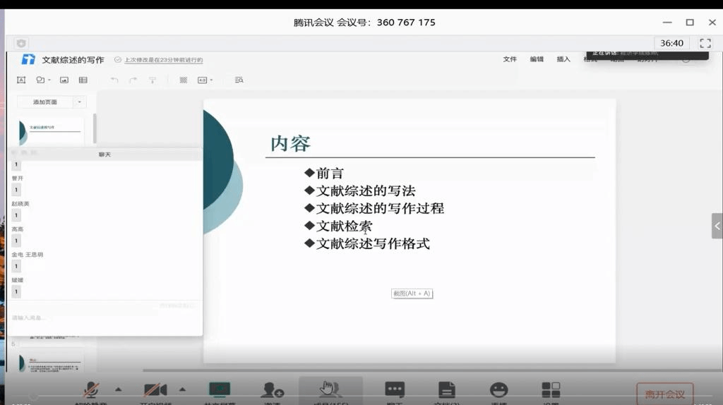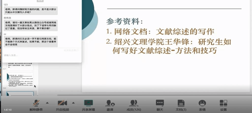 陈师教授生动而深刻的讲解引起了参会同学的深刻思考和广泛讨论。在讲座最后的提问时间,陈师教授针对同学们所关心的问题进行了解答。本次专题讲座活动使同学们对文献综述写作有了进一步地认识与理解,从而提升学生文献收集、整理归纳、科研表达等能力,必将助力本次大赛的顺利推进。