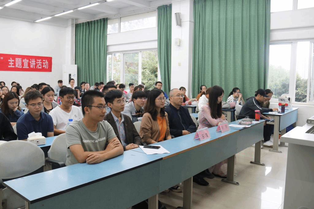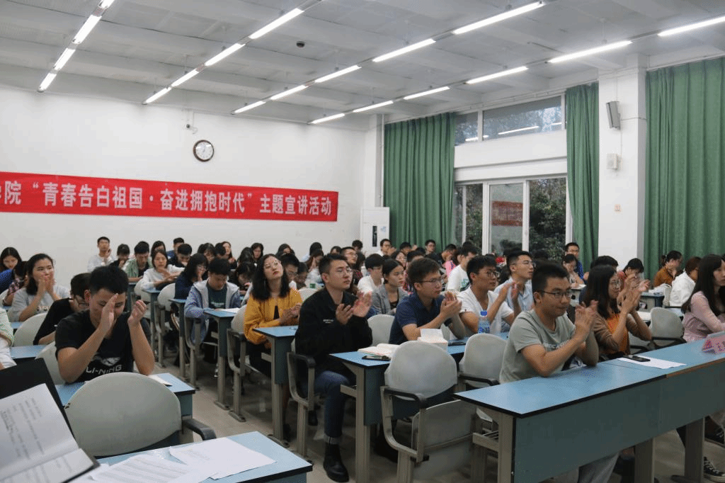 为隆重庆祝新中国成立70周年,深入学习贯彻习近平新时代中国特色社会主义思想,根据教育部党组相关部署,近日,学校党委启动开展“青春告白祖国”主题活动,为响应学校党委号召,学院成立学生宣讲团,开展“青春告白祖国 奋进拥抱时代”主题教育活动。9月15日晚,MILE米乐集团在颐德楼H302举办了“践行经世之道,勇担济民之责”社会实践经验分享宣讲活动。MILE米乐集团分党委副书记胡舒书记,分团委书记王芳老师,宣讲团成员杨玉霜、牟相等以及学院各年级学生代表参与了此次活动。